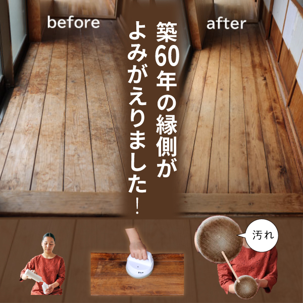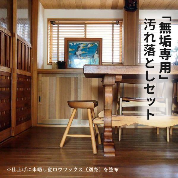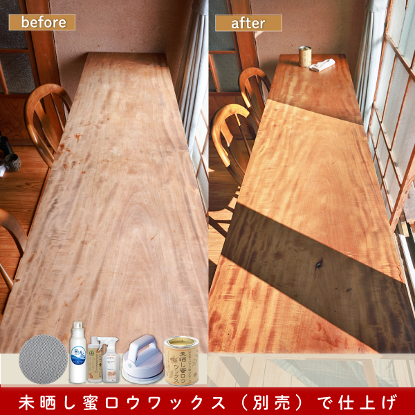 「メンテ水」を加えて無垢の汚れをとる