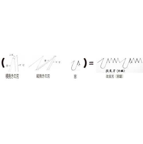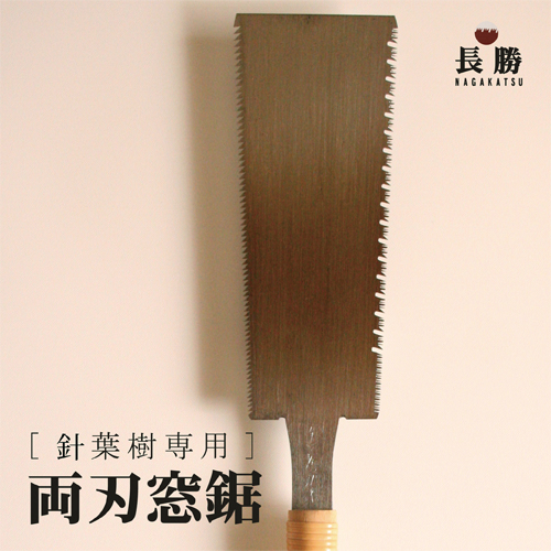改良刃(窓鋸)と縦挽き用の刃を持つ両刃鋸。