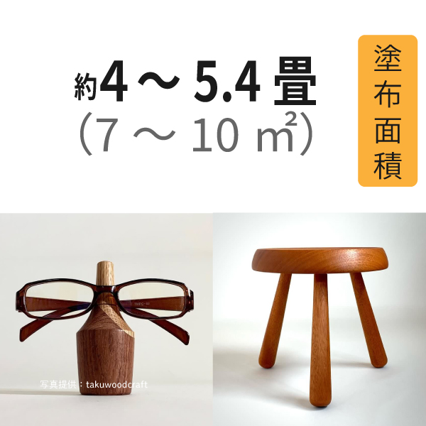 ③塗布量の目安 100mlで約4--4.5畳分(7--10㎡)塗れます。※樹種により塗布面積が異なります。