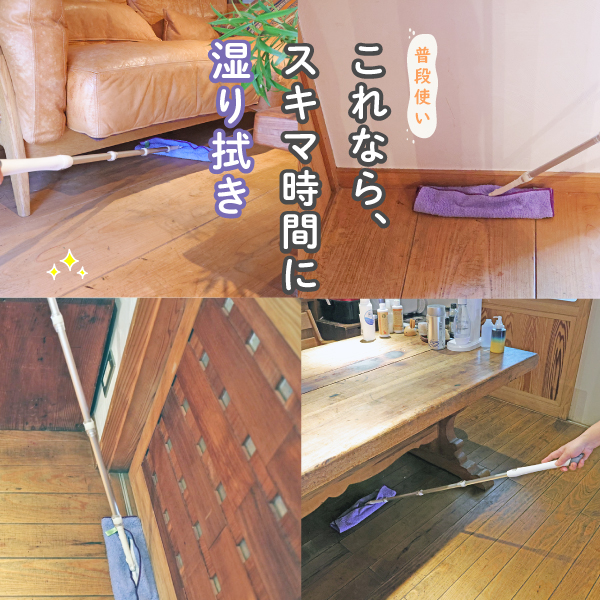 一番の特徴は、無垢材や畳などの自然素材の床につかっても変色変質はほぼ無い点です(詳細は取説へ)。多種多様な素材が混在する住まいのお掃除に最適です