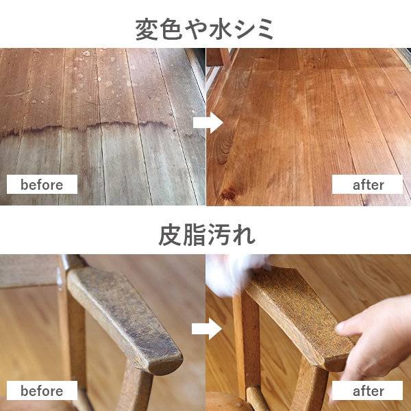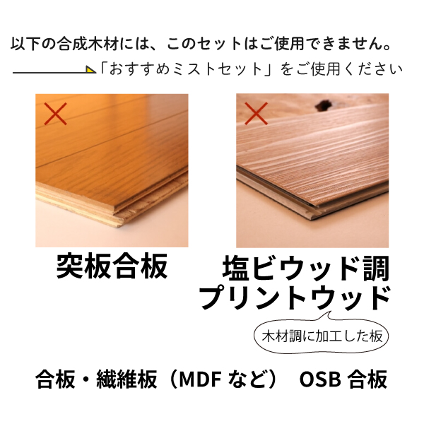 メンテ水(別売)でミストデワックスを希釈した液を汚れた箇所に噴し、クイックルワイパーにマルチクロス(別売)・マルチクロスセットを装着し、ふき取ると汚れが落ちやすくなります。(サムネイル画像9枚目をご覧ください)