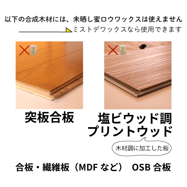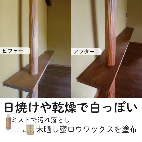 ・木の表面が白っぽい/乾燥している場合 → ミストデワックスで汚れを落としてから塗る