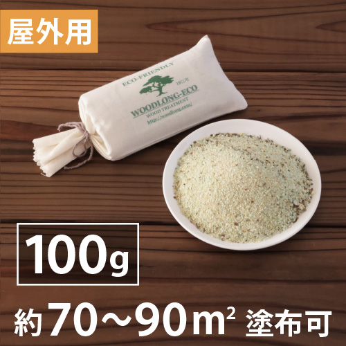 【屋外専用】天然成分100%(土壌・水質汚染なしの木材保護防護剤「ウッドロングエコ」は100gで約70--90平方メートル(二度塗りで)塗れます。木の風合いを生かした自然な質感が特徴です。
