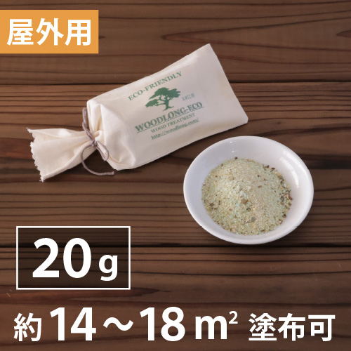 【屋外専用】天然成分100%(土壌・水質汚染なしの木材保護防護剤「ウッドロングエコ」は20gで約14--18平方メートル(二度塗りで)塗れます。木の風合いを生かした自然な質感が特徴です。